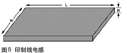 式(2)示出了計(jì)算印制線電感(Inductance)的公式。參見圖6。