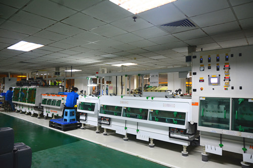 參訪團(tuán)后走訪了珠海鎮(zhèn)東有限公司。珠海鎮(zhèn)東成立于1999年1月1日,公司的核心產(chǎn)品是印制電路板制造用陶瓷刷輥、不織布刷輥、尼龍針?biāo)⑤?、火山灰刷輥,另外還有光學(xué)級(jí)曝光玻璃、全系列各類刷板機(jī)系統(tǒng)(21刷/17刷/13刷/9刷/8刷/4刷/2刷/1刷<以及薄板、厚板>)、砂帶研磨機(jī)、銅粉過濾機(jī)、真空絲印機(jī)和匹配型塞孔油墨/樹脂等線路板制造用相關(guān)設(shè)備及物料, 并為廣大客戶提供真空絲印塞孔、研磨的代工服務(wù)。在珠海鎮(zhèn)東的生產(chǎn)車間內(nèi),各生產(chǎn)設(shè)備正在正常運(yùn)行,工人們有條不紊地調(diào)整著設(shè)備參數(shù)。據(jù)總經(jīng)理趙其平介紹,2016年開工大吉,訂單量穩(wěn)中有升,今后將繼續(xù)提升企業(yè)的科研實(shí)力,以優(yōu)質(zhì)的產(chǎn)品服務(wù)客戶、為客戶創(chuàng)造價(jià)值。