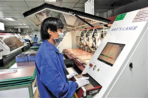 五株科技的員工在流水線上制作電路板。