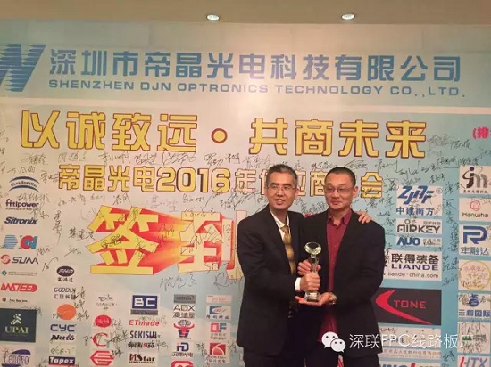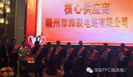 3月25日,天氣晴好,深圳沙井福永,內(nèi)液晶顯示模組領(lǐng)軍企業(yè)帝晶光電召開年度供應(yīng)商大會,贛州市深聯(lián)電路作為帝晶光電的主打FPC供應(yīng)商,一舉斬獲“2015年度核心供應(yīng)商”大獎(jiǎng)。