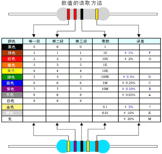 電阻的色標(biāo)位置和倍率關(guān)系如下表所示:
