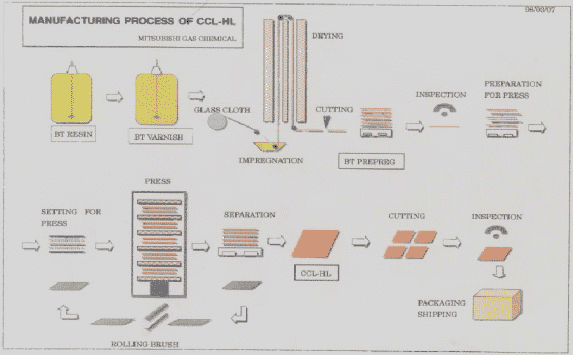 電子產(chǎn)品在多功能化、高I/O數(shù)及小型化趨勢下,IC構(gòu)裝技術(shù)隨之改變,因此由1980年代以前的通孔插裝(PTH Insertion),1980~1993年大幅變革成表面黏裝smt方式,進展到至今以BGA、CSP及Flip Chip為主的構(gòu)裝方式,由IC載板生產(chǎn)成本來看,材料價占比重高達40%~50%,原料中又以BT樹脂(Bismaleimide Triazine Resin)為主,BT樹脂是日本三菱瓦斯化學(xué)公司于1982年經(jīng)拜耳化學(xué)公司技術(shù)指導(dǎo)所開發(fā)出來,擁有專利也商業(yè)化量產(chǎn),因此是目前全球大的BT樹脂制造商。