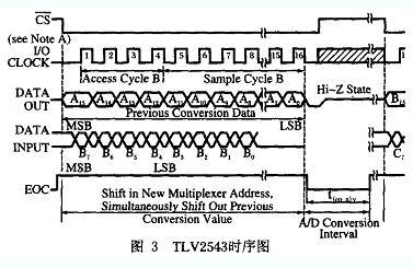 TLC2543是TI公司的帶串行控制和11個輸入端的12 位、開關(guān)電容逐次逼近型A/D轉(zhuǎn)換器。 片內(nèi)轉(zhuǎn)換器有高速、高精度和低噪音的特點。 TLC2543工作過程分為兩個周期:I/O周期和轉(zhuǎn)換周期。I/O周期由外部時鐘SCLK決定,延續(xù)8、12或16個時鐘周期,同時進行兩種操作: 在SCLK上升沿以MSB方式輸入8位數(shù)據(jù)到片內(nèi)寄存器;在SCLK下降沿以MSB 方式輸出8、12、16位轉(zhuǎn)換結(jié)果。轉(zhuǎn)換周期在I/O周期的后一個SCLK下降沿開始,直到EOC信號變高,指示轉(zhuǎn)換完成。 為了與TLV5618的I/O周期一致,采用了MSB方式,使用CS的16 時鐘傳送的時序。其操作時序如圖3 所示。杭州PCB|杭州smt