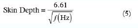 在高頻段,必須考慮一種稱為“趨膚效應(yīng)”的現(xiàn)象。趨膚效應(yīng)會(huì)引起電流流向?qū)Ь€的外表面——結(jié)果會(huì)使得導(dǎo)線的橫截面變窄,因此使直流(DC)電阻增大。雖然趨膚效應(yīng)超出了本文討論的范圍,這里還是給出銅線中趨膚深度(Skin Depth)的一個(gè)很好的近似公式(以cm為單位):