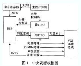 目標(biāo)板是一個(gè)中央資源板子系統(tǒng),其結(jié)構(gòu)如圖1所示。主要作用是為數(shù)字通道子系統(tǒng)提供精確的時(shí)序信息,為數(shù)字通道板之間提供定時(shí)和控制信號(hào),分析處理數(shù)字通道子系統(tǒng)和探筆子系統(tǒng)返回的數(shù)據(jù)。該電路板上有4個(gè)邊界掃描器件:EPLD(EPM7256AETC144)、FPGA(EP1S25F780)、Flash EPROM(EPC8)和DSP(TMS320C6203B)。