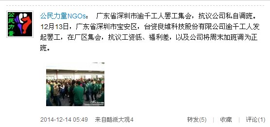 來源:深圳一臺資科技廠千名員工罷工 抗議克扣工資
